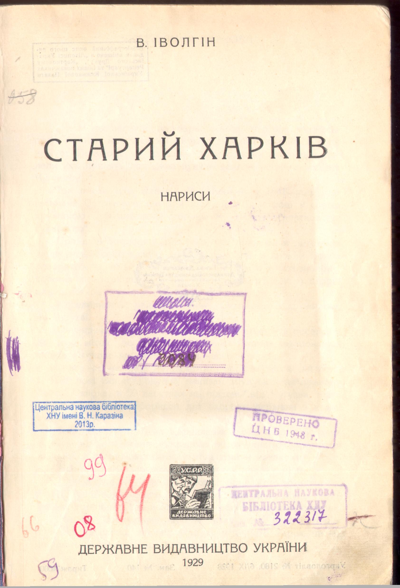 Іволгін В. Старий Харків : нариси / В. Іволгін. – Харків : Державне видавництво України, 1929. – 31 с. : іл.