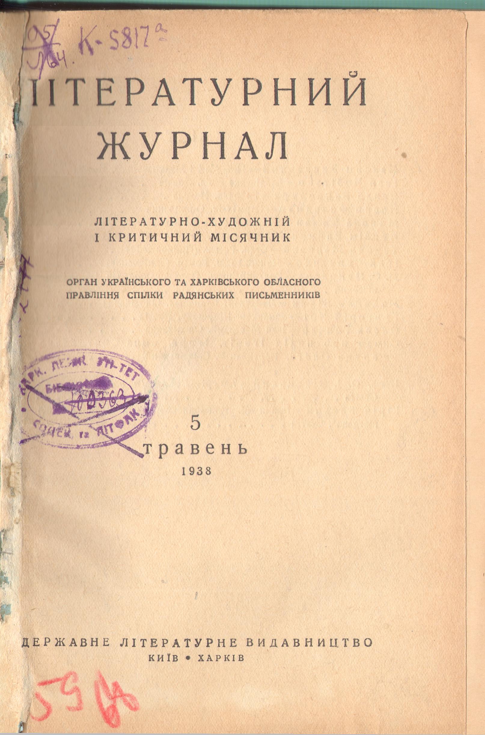 Літературний журнал. – 1938. – № 5 (травень)