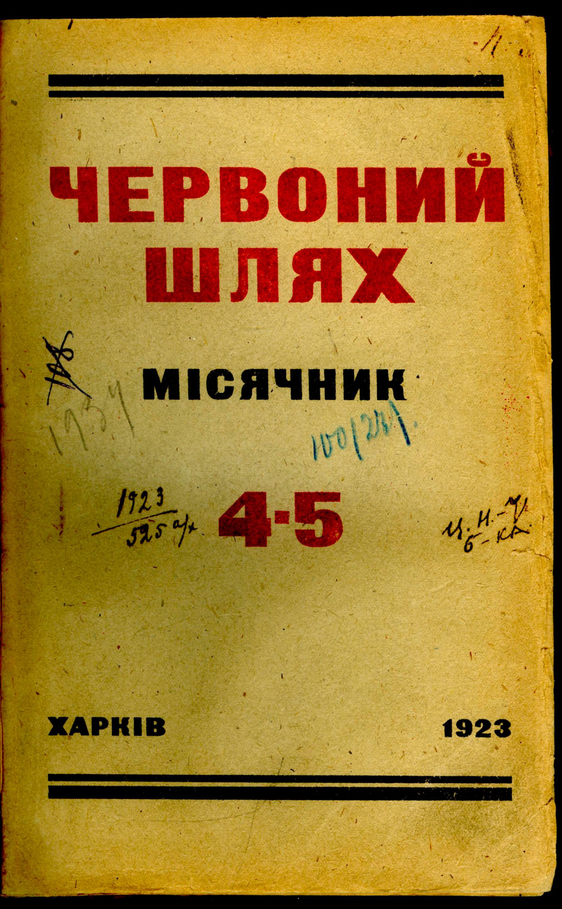 Червоний шлях : громадсько-політичний і літературно-науковий місячник. – Харків : В–во «Червоний Шлях» , 1923. – № 4–5 (серпень). – (4), 290 с.