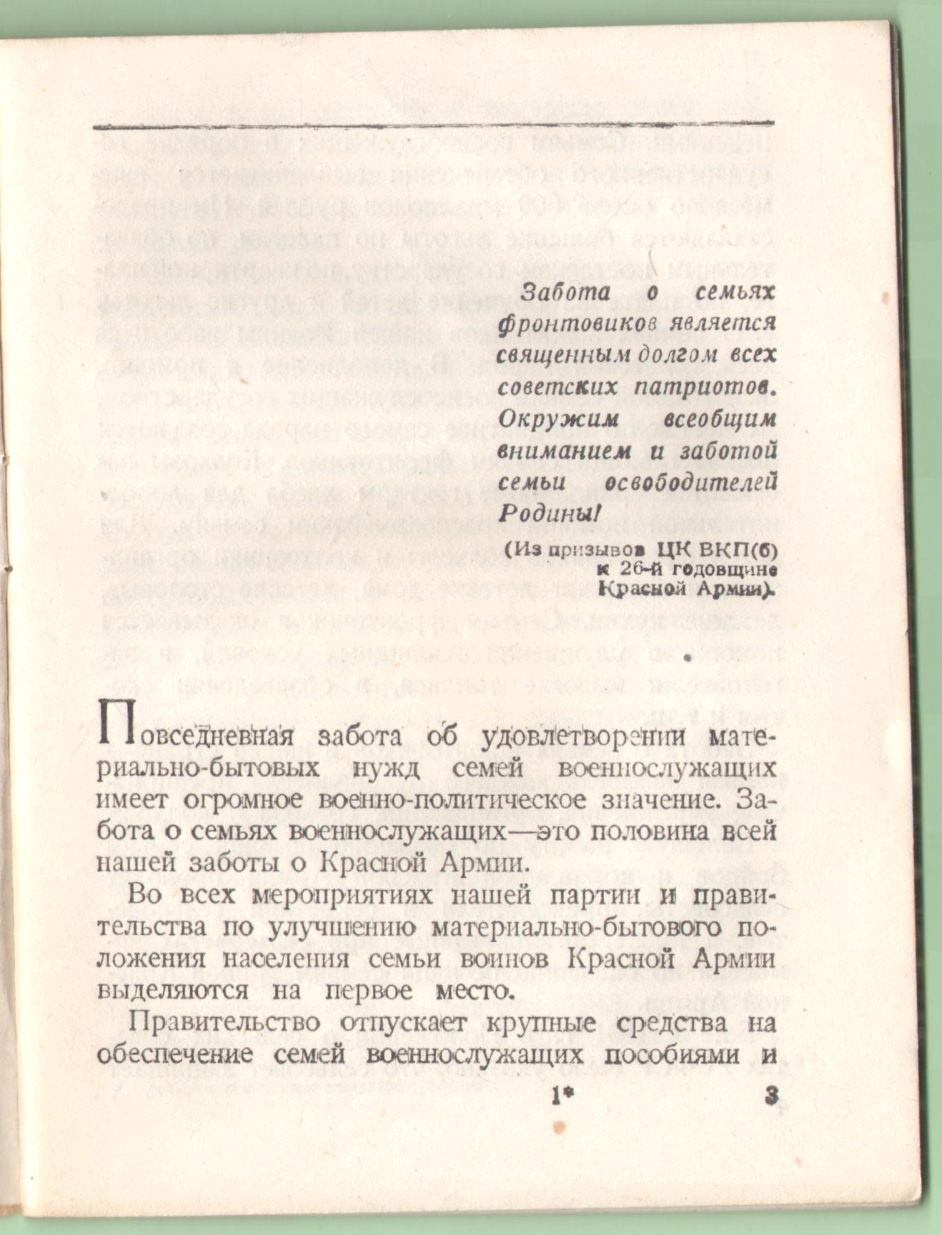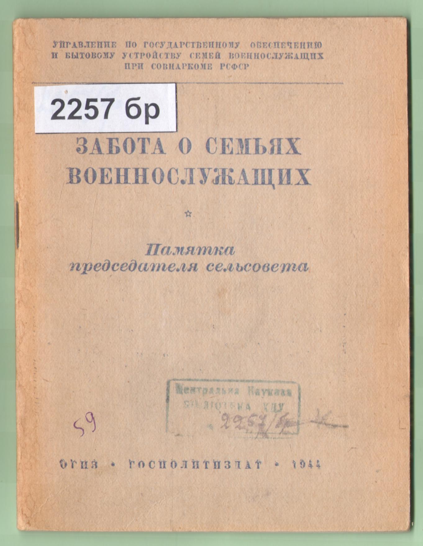 Забота о семьях военнослужащих. Памятка председателя сельсовета. – Москва : ОГИЗ Госполитиздат, 1944. – 40 с.