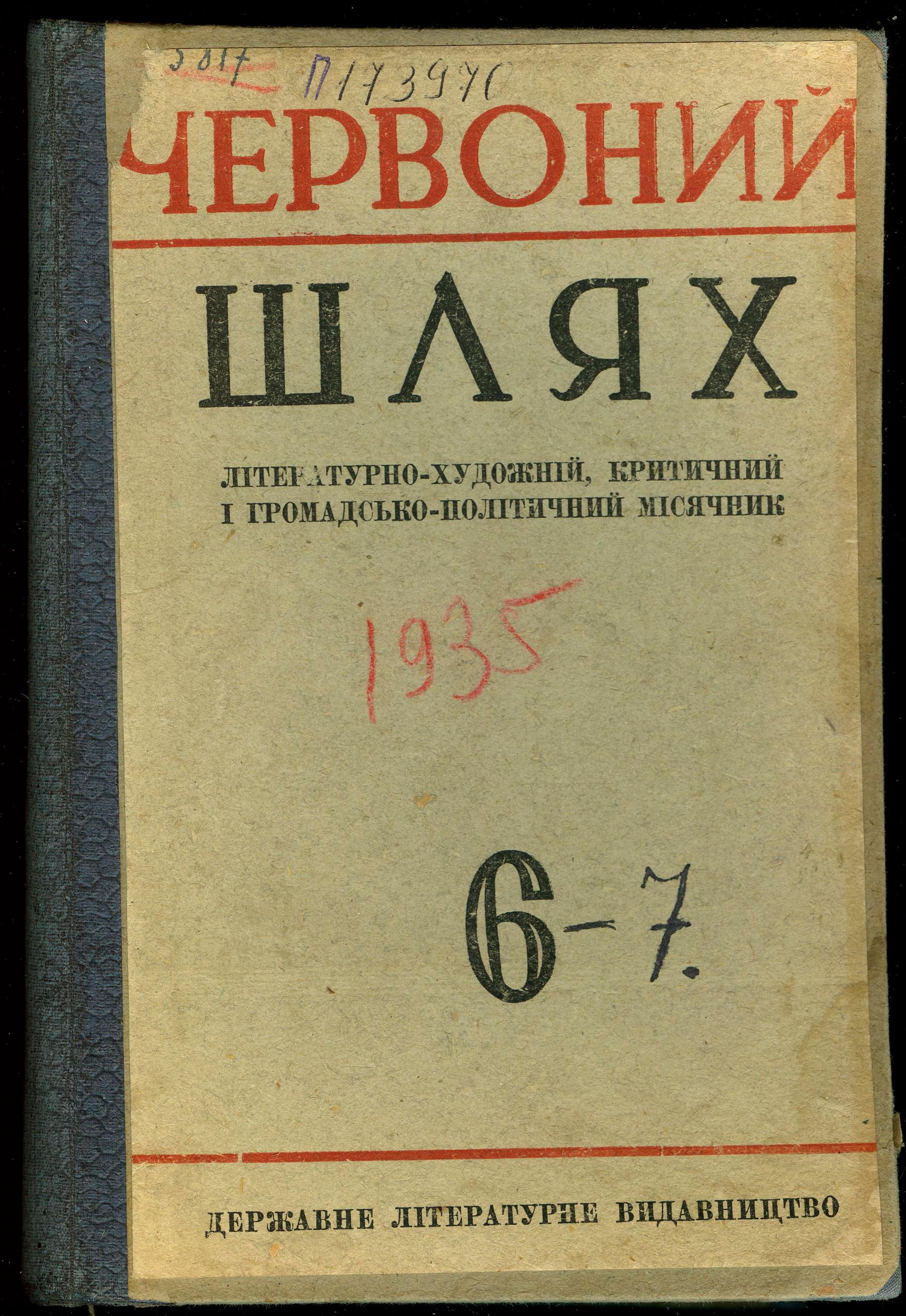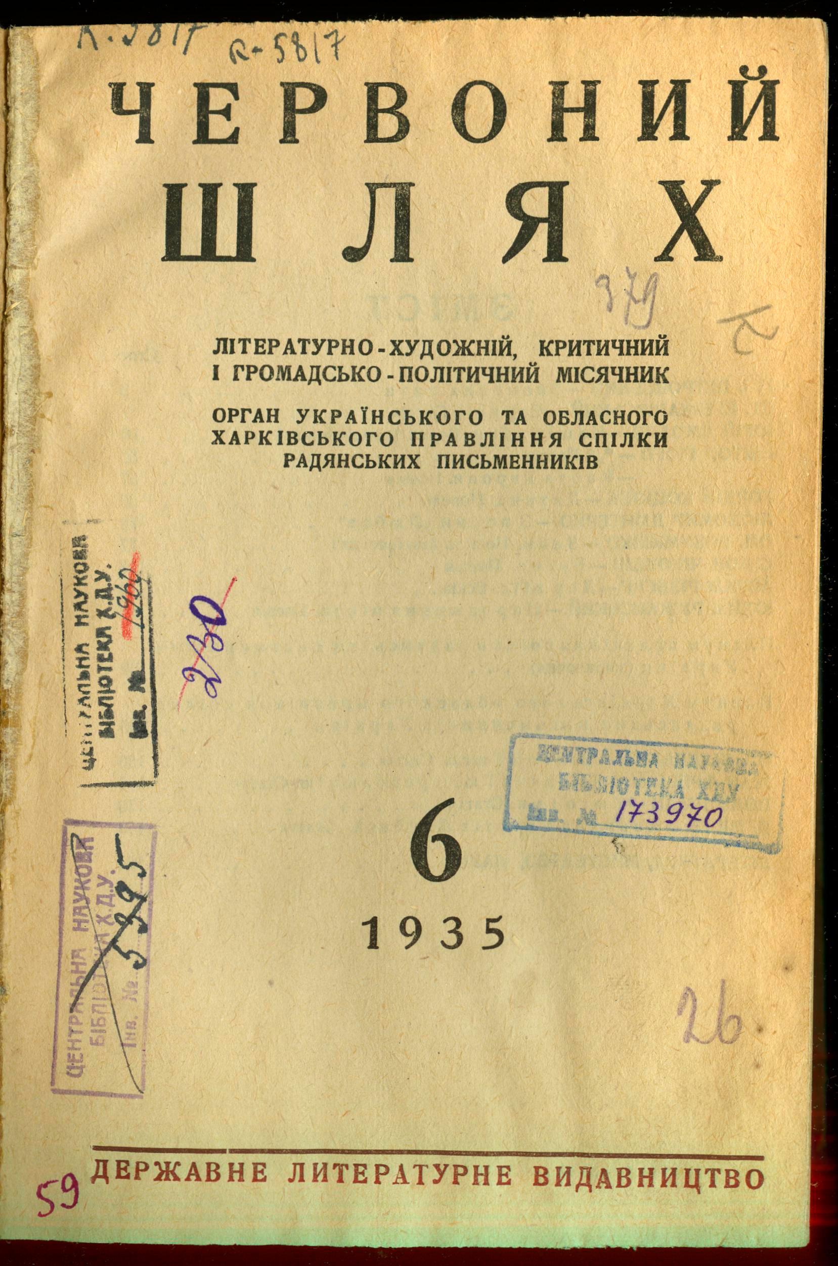 Червоний шлях : Літературно-художній, критичний і громадсько-політичний місячник . – Харків : Державне літературне видавництво, 1935. – № 6. – 210, (2) с. ; 1 вкл. арк. : іл.