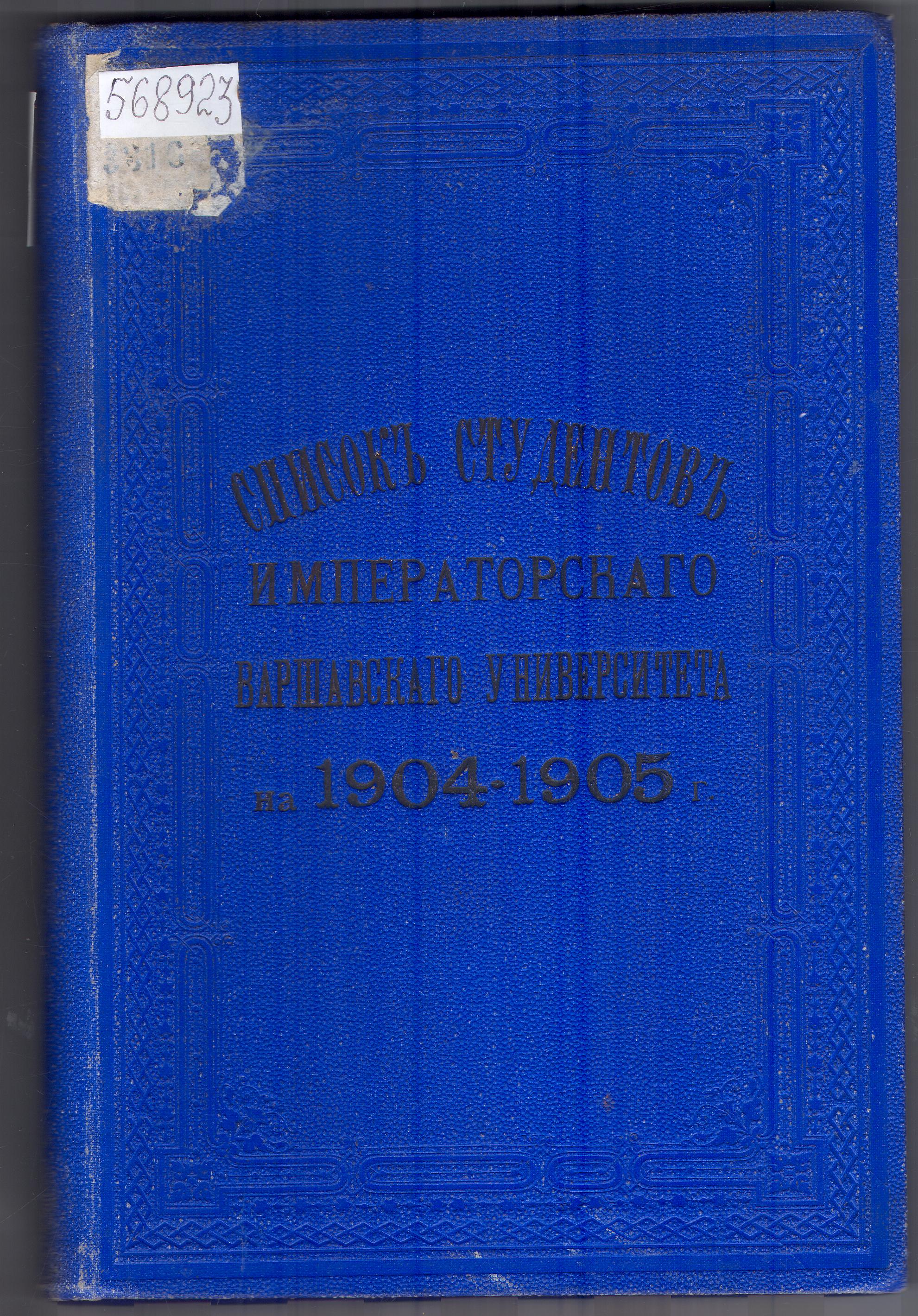 Список студентов Императорского Варшавского университета на 1904–1905 академический год (36-ой год существования Университета)