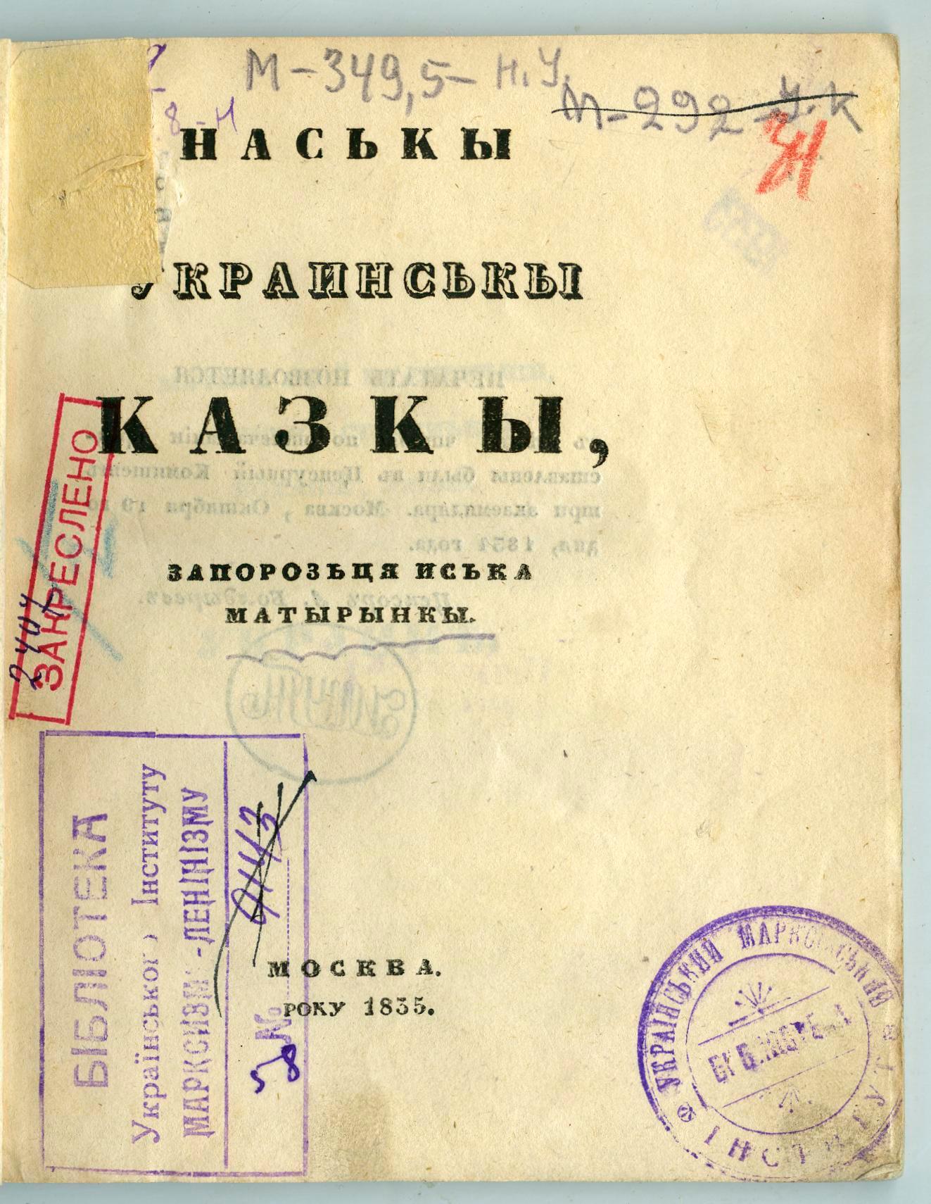 | dc.identifier.citation | Наськы украинськы казкы, запорозьця Иська Матырынкы. – Москва: В университетской типографии, 1835. – XX, 49 с. | ru_RU |