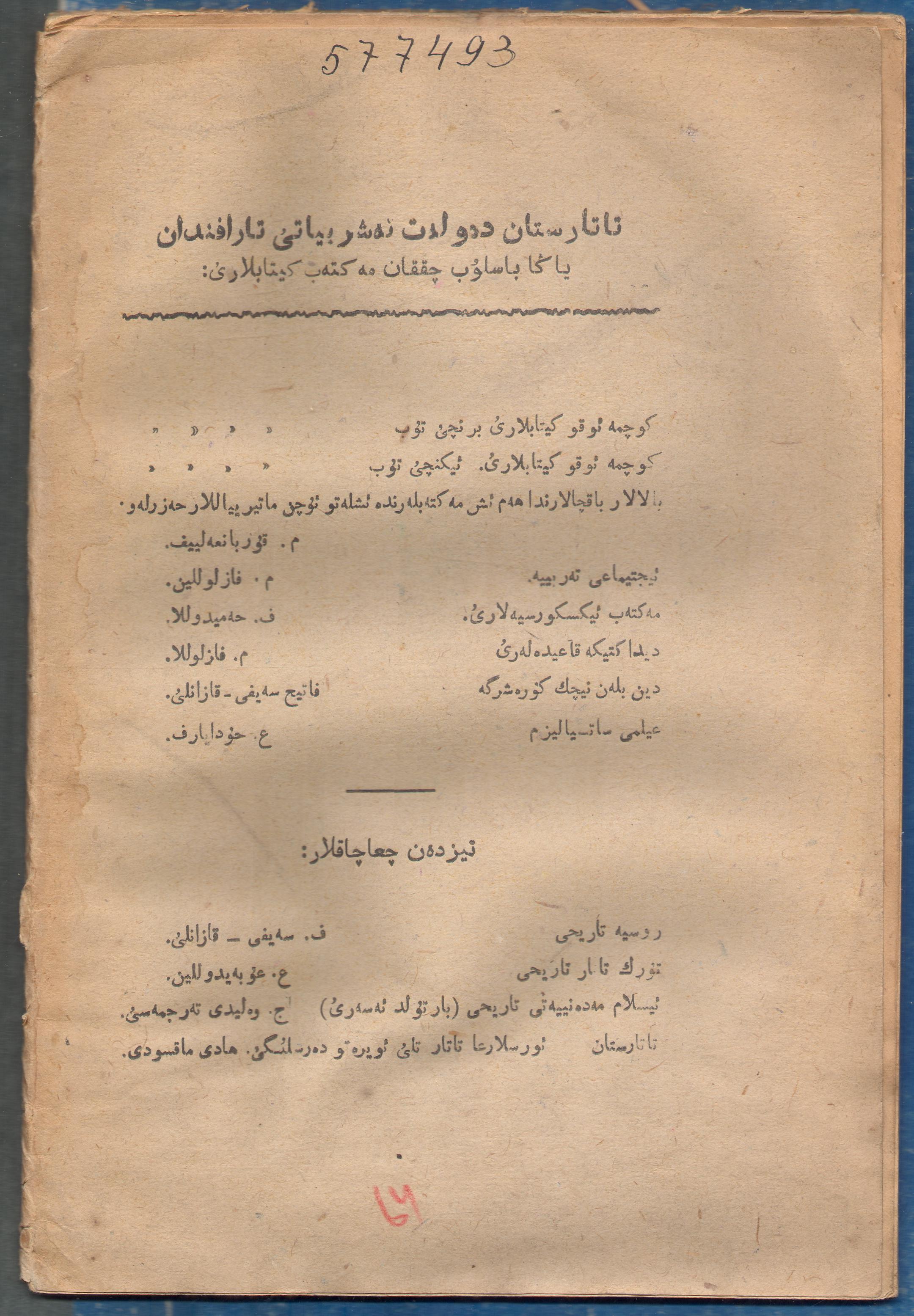 Учебник татарского языка для начальной школы (на татарском языке) . – Казань: Татгиз, 1922. – 60 с. : ил.