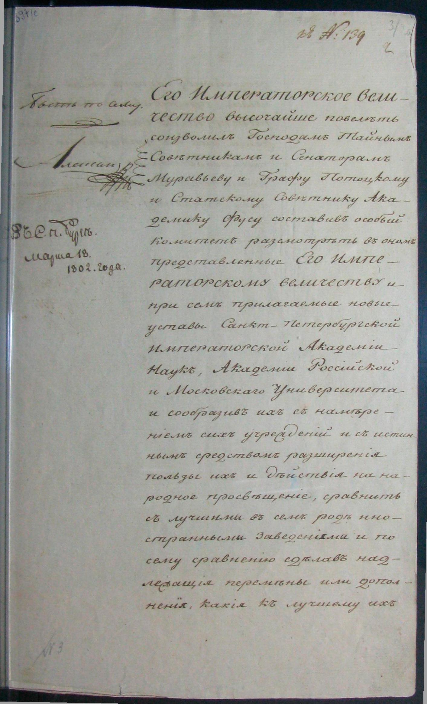 | dc.identifier.citation | [Указ с собственноручной резолюцией императора Александра І об учреждении особого комитета для выработки новых Уставов для Академии наук и Московского университета]. – СПб., 18 марта 1802 г. – 2 л. | ru_RU |