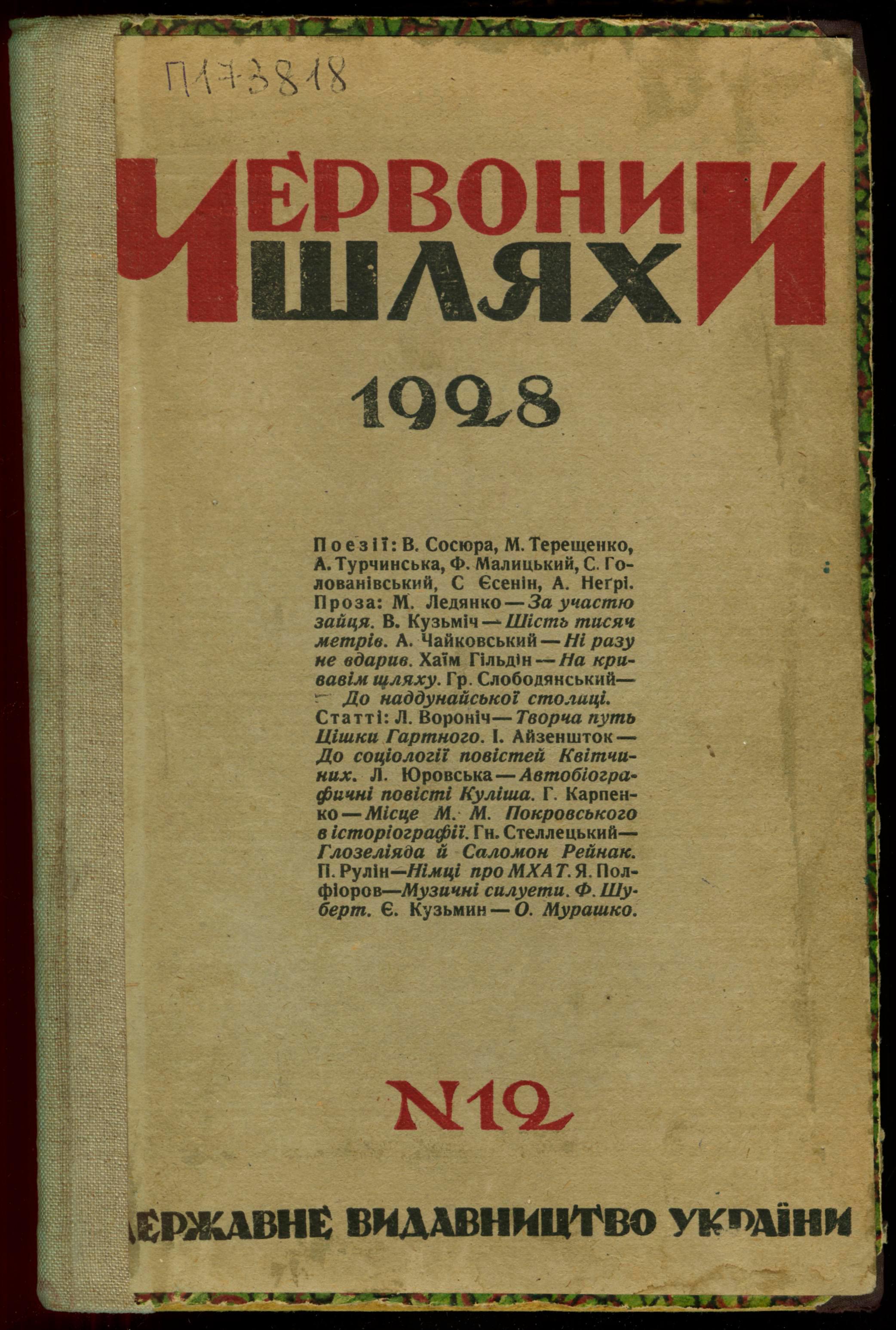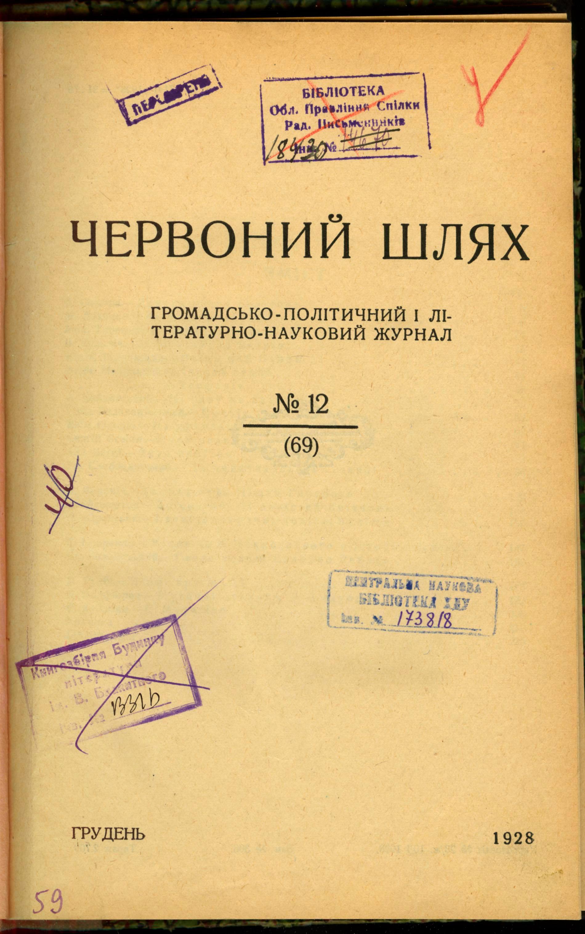 Червоний шлях : Громадсько-політичний і літературно-науковий журнал . – Харків : Державне видавництво України, 1928. – № 12 (69) (грудень). – 260 с. ; 2 вкл. арк. : іл.