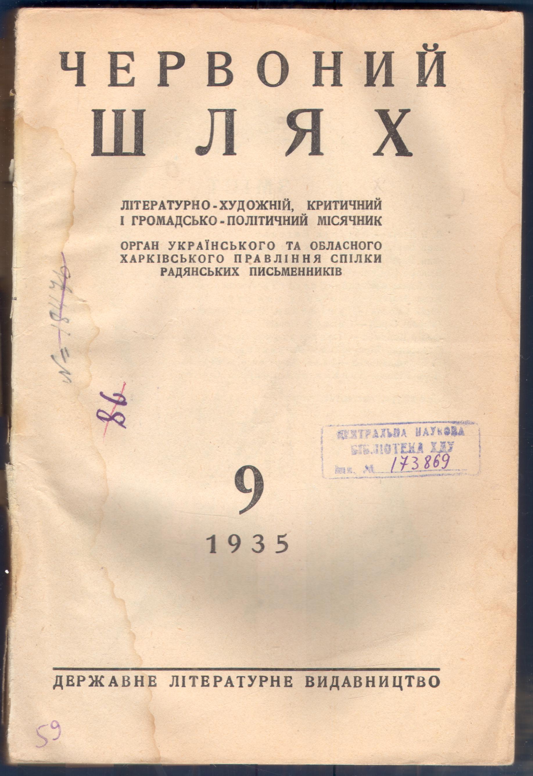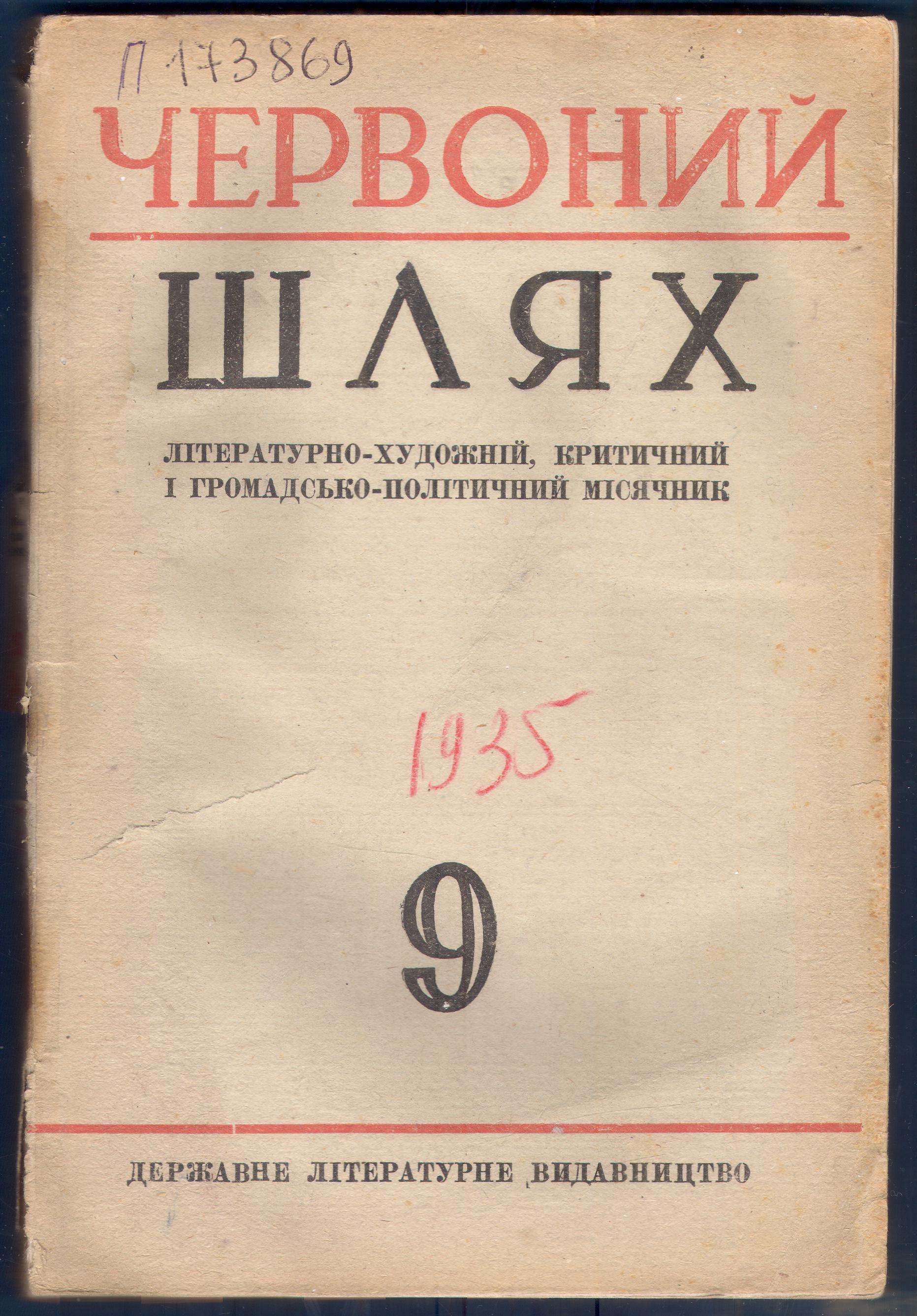 Червоний шлях : Літературно-художній, критичний і громадсько-політичний місячник . – Харків : Державне літературне видавництво, 1935. – № 9. – 206, (2) с. ; 2 вкл. арк. : іл.