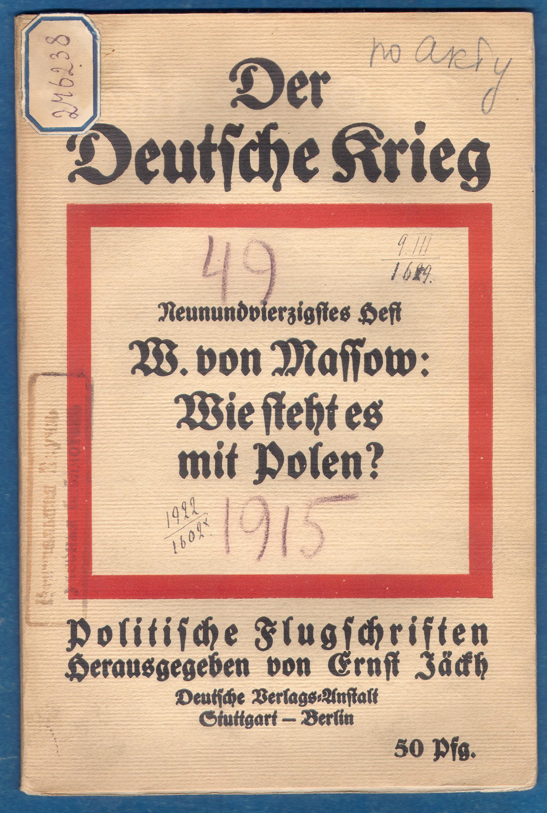 Massow W., von. Wie steht es mit Pollen? / Wilhelm von Massow. – Stuttgart; Berlin: Deutsche Verlags-Anstalt, 1915. – 32 S. – (Der deutsche Krieg. Politische Flugblätter ; H. 49).