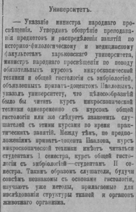 Университет // Утро : политическая, общественная, литературная и экономическая газета. 1908, 28 сентября (№ 552). – Харьков, 1908. – С. 5.