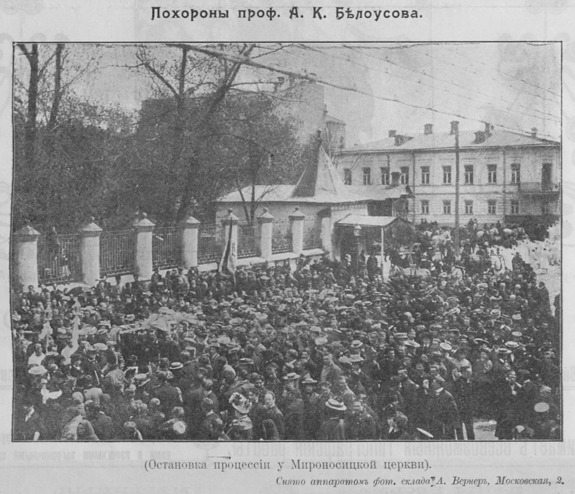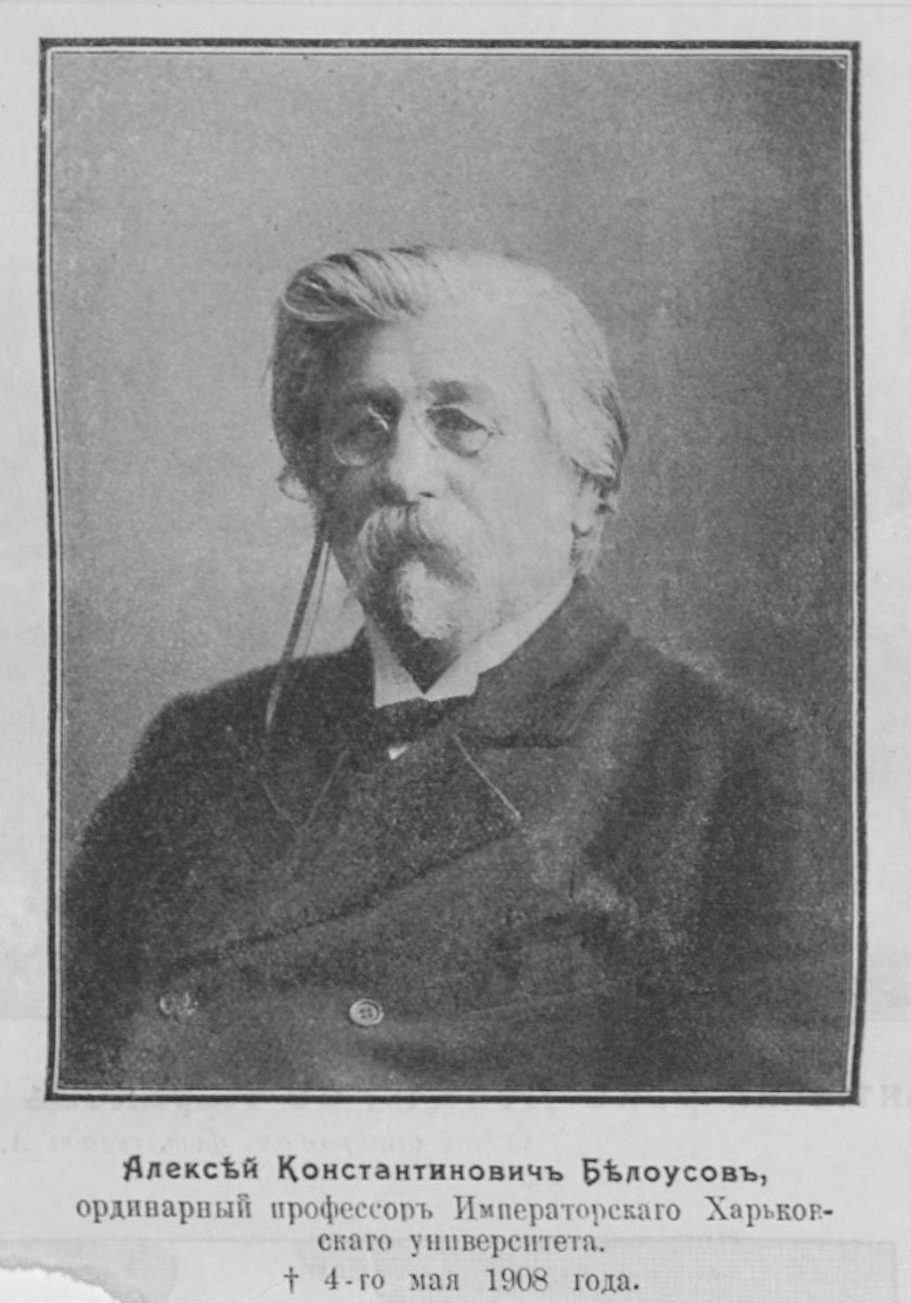 Алексей Константинович Белоусов, ординаторный профессор Императорского Харьковского университета. Похороны проф. А.К.Белоусова: фото // Иллюстрированное приложение к газете Утро. – Харьков, 1908. – 11 мая (№ 437). – С.3